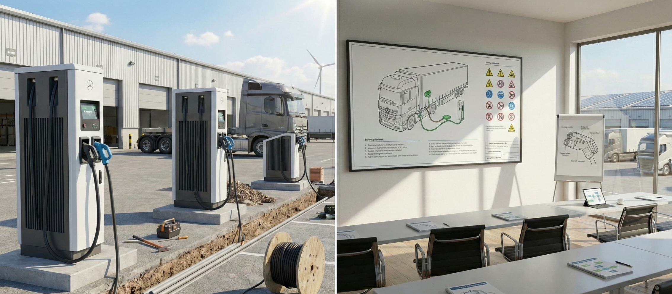 Wir übernehmen die Einweisung Ihres Teams, richten das Lademanagement ein und stehen als Ansprechpartner für den laufenden Betrieb zur Verfügung. Serviceverträge mit kurzen Reaktionszeiten, Fernüberwachung der Ladeinfrastruktur und regelmäßige Auswertung der Betriebsdaten gehören dazu.