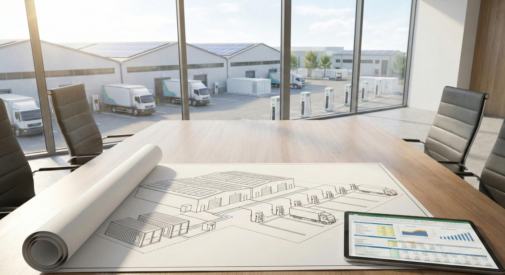 Basierend auf Ihrer Disposition bestimmen wir gemeinsam, welche Routen für den Einsatz von E-LKWs geeignet sind und welche Einsparungen Sie erzielen.Außerdem betrachten wir detailliert, welche Möglichkeiten für eigene Energieerzeugung bei Ihnen im Depot vorhanden sind.