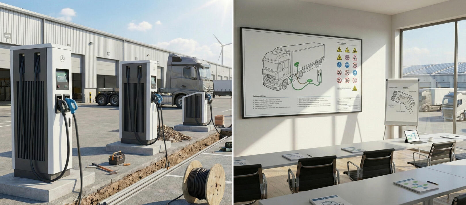 Steigen Sie jetzt um: Sparen Sie bis zu -25% pro Kilometer mit E-LKWs, die bei Ihnen am Standort geladen werden. Wir begleiten Sie auf dem gesamten Weg, von der ersten Projektskizze bis zur Inbetriebnahme.